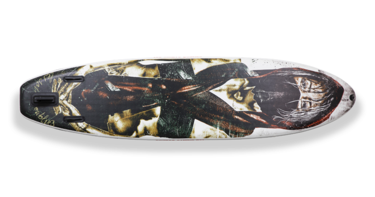 You'll be cool on the water too.. Internationally acclaimed street artist Eddie Colla has put his name on this touring stand-up paddle board, which features unique and exciting graphics, a 10'6" deck and a carbon fiber paddle.Eddie Colla's style is straightforward and catches the eye. With its urban hues and dark undertones, it is an important element of the new street art inspired SUP.Street Art is a free display of the artist's creativity without the constraints of museums and galleries. Such freedom of expression is comparable to what one experiences aboard a SUP during a solo trip or family outing.