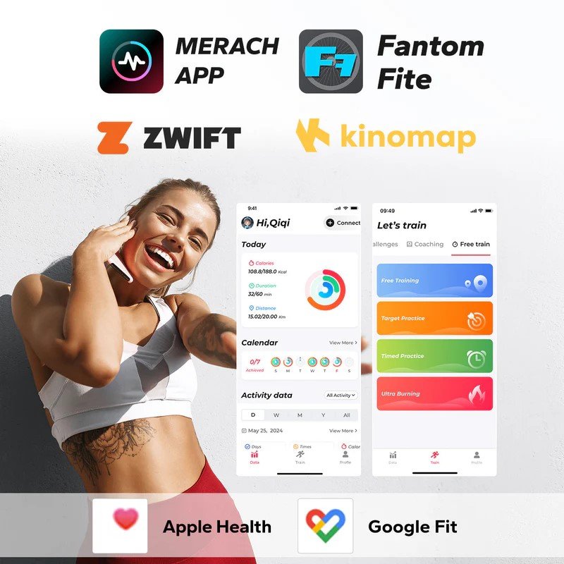 Easy to assemble90% pre-assembled, installation takes only 20 minutes.Large displayConnect to the MERACH app via Bluetooth to track your training data on the large display and analyze your performance in real time.Adjustable device holderPlace your smartphone or tablet for convenient viewing of your workout data in the app.Compatible appsMerach, Kinomap, Zwift, Apple Health, Google Fit, Fanton Fite (by Merach).