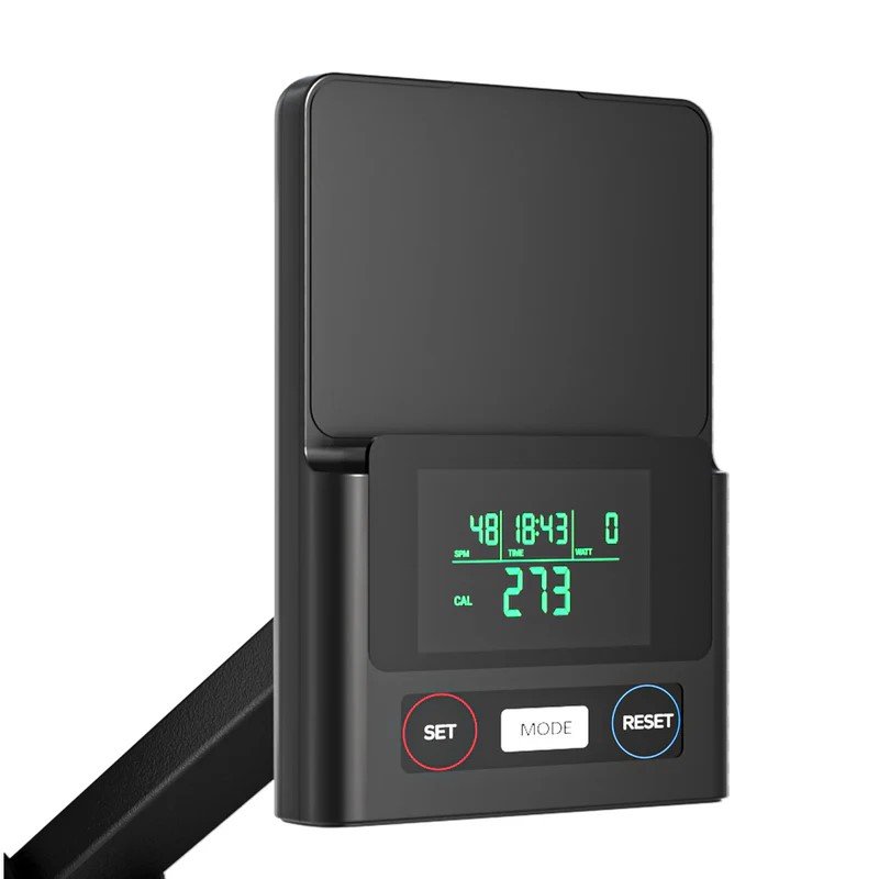 Resistance System:Water ResistanceResistance Levels:Water Resistance - 6 LevelsResistance Adjustment Method:Water Volume AdjustmentNumber of Blades: 12Water tank diameter: Not availableWater tank material: PolycarbonateWater tank capacity: Full - 15 L / Maximum water level - 7.5 LMachine material:Red oak + steel / rubber + steelOther features:Equipped with electric water pump and water purification tabletsFolding method:Rail lifts up for storage when foldedPower supply:AAA batteriesMaximum load capacity: 160 kgHandle material:Steel + TPR synthetic leather handle coverDraw rope material: NylonHandle Size: 485 mmPedal Adjustment: 6 levels of length adjustmentPedal Spacing: 30 mmTrack Type: Double TrackRail Material: Red oak/rubberwoodSliding rail material: Aluminum alloyTrack length: 925 mmInner track length: 1115 mmTrack slope: NoneSuitable Height: 119 cm - 200 cmSeat Material: PU foam (ergonomic)Seat Height from Ground: 300 mmSeat and Wheel Material: N/ADisplay type: Backlit LCD monitorDisplayed content: Time, time/500 m, distance, calories, SPM, watts, shots, total shots, heart rateIpad holder: ?Heart Rate Monitoring: NoCommunication Method: BluetoothBuilt-in Programs: NoneApp Compatibility: MERACH, KinomapCourses: ?Storage method: Vertical storage, storage on railsArea occupied (m3): 0.37 Folded dimensions: 890*420*1040 mmFolded dimensions: 1805*420*415 mmNet weight: 34 kgTotal weight: 38 kg