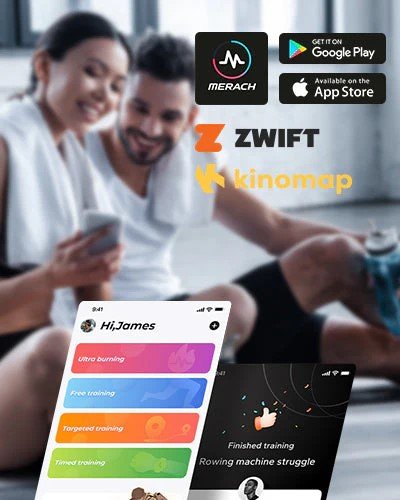 Integrated Apps - Connects to Kinomap, Zwift, Apple Health, Google Fit, Fanton Fite (Merach) for personalized workouts.