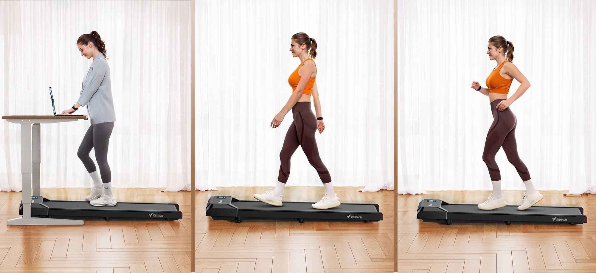 Working Mode: 1.6-2.9 km/h Walking Mode: 2.9-4.5 km/h Jogging Mode: 4.5-6.4 km/h 3in1 versatile design - Functions as an under desk treadmill, for walking or jogging with 3 adjustable modes for a variety of home workouts.