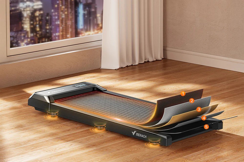 Enhanced comfort and safety - It features a 5-layer anti-slip treadmill, 6 silicone shock absorbers and can carry up to 120kg.