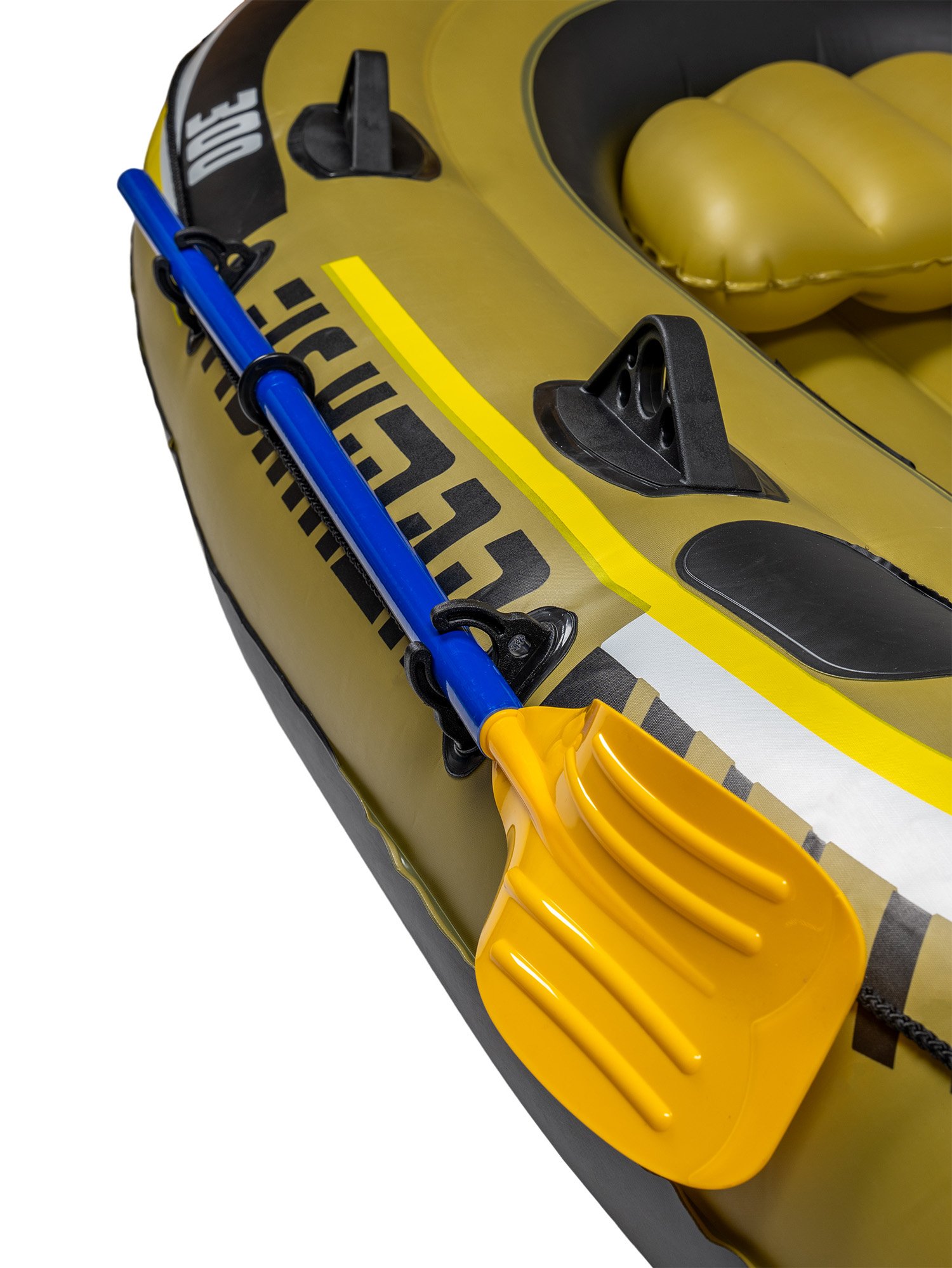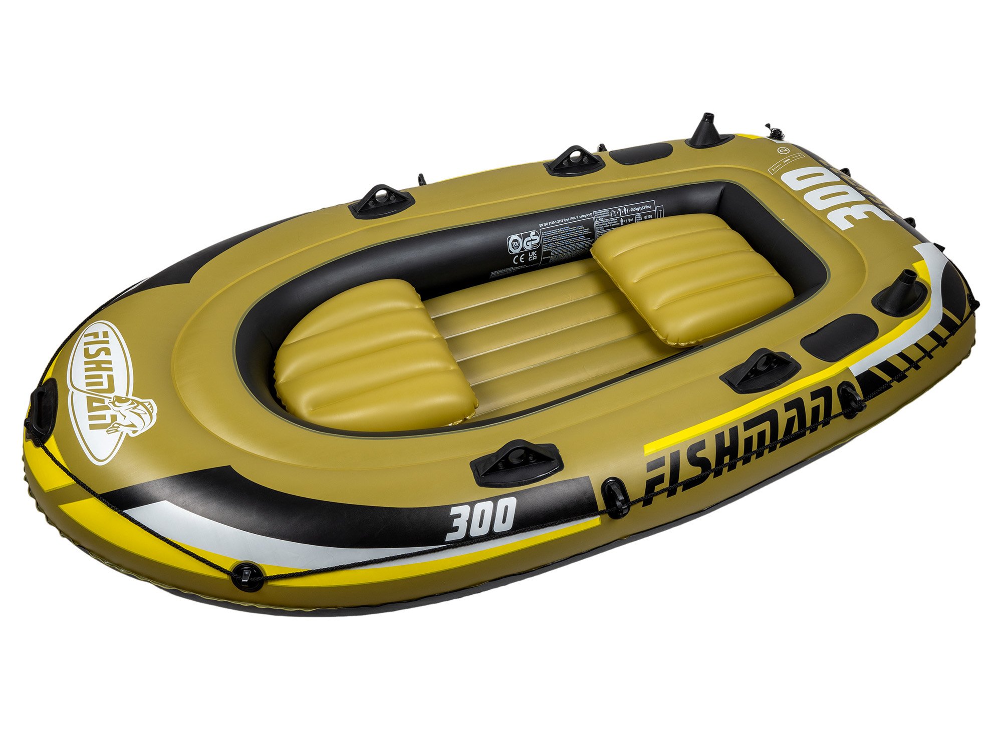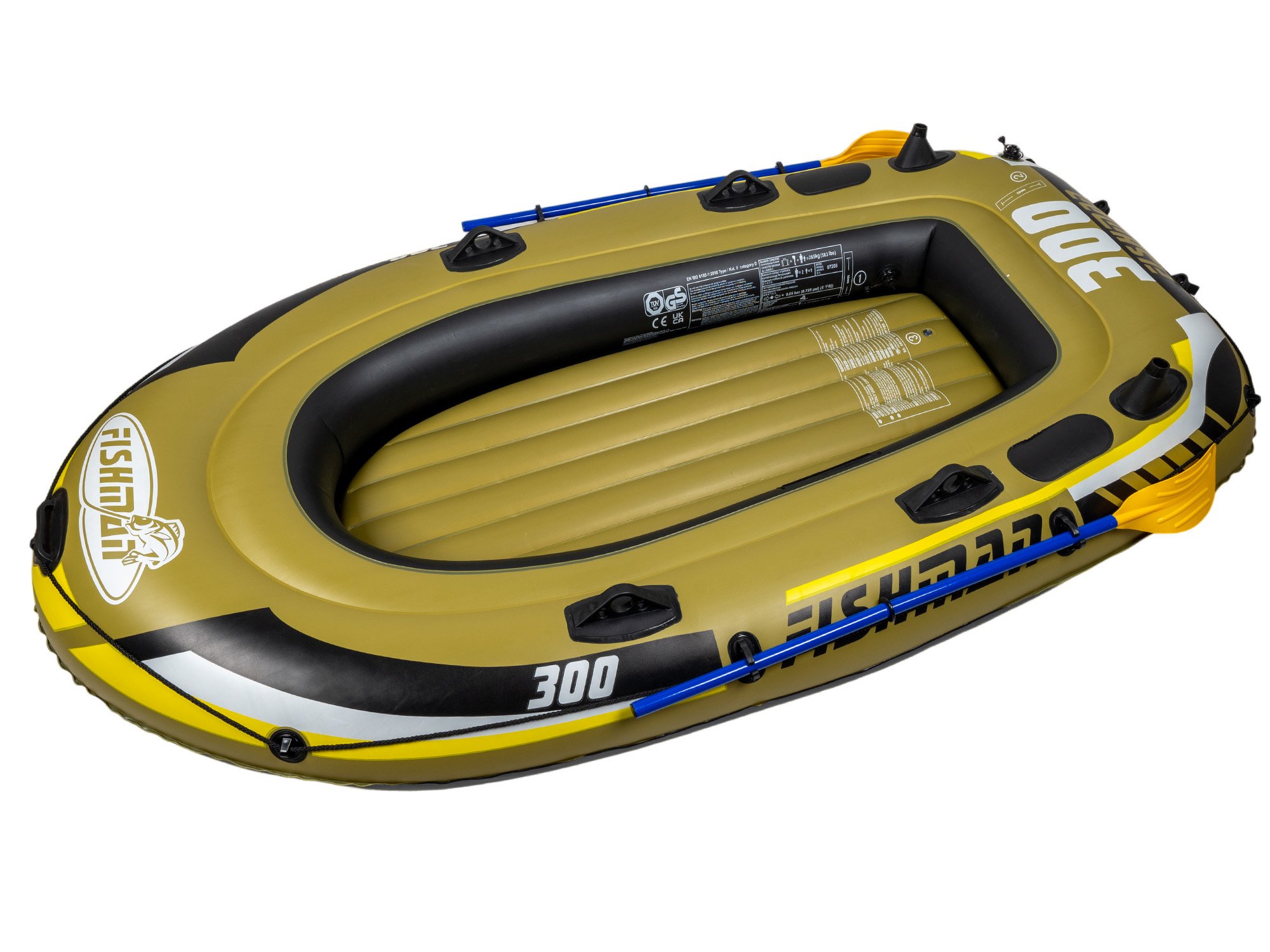 This three-chamber pontoon made of solid 0.50 mm thick PVC ensures stability even if one chamber is punctured. The inflatable soft floor adds to the comfort, while practical accessories - paddle grips, rod holders, tow rope or a bag for small items - make the Fishman 300 a well-equipped recreational boat. Thanks to the front grip, the boat can be easily towed. The kit includes all the necessary equipment for a quick launch.