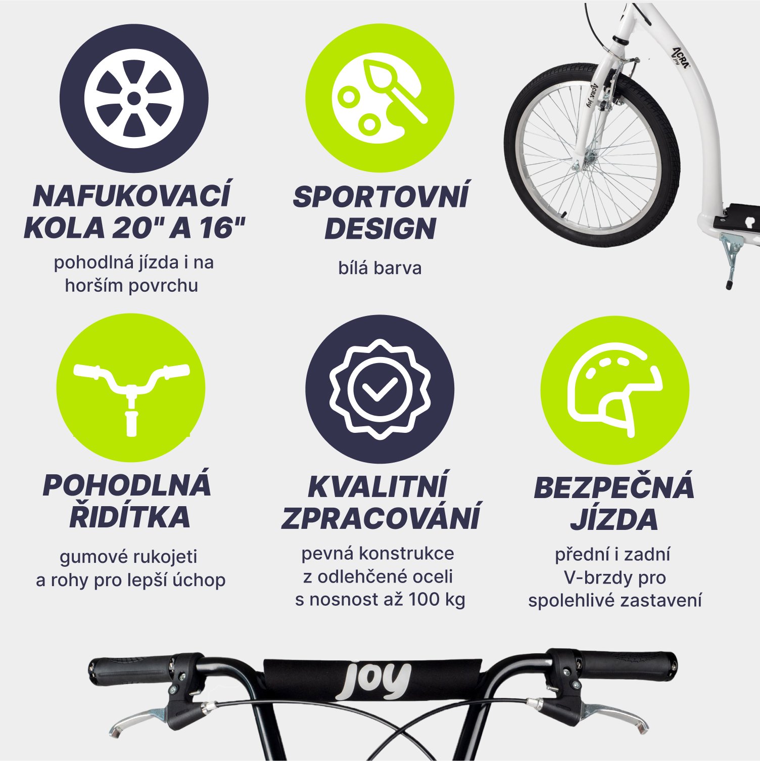 Acra Joy AVEN ScooterThe Acra Joy Aven scooter is fast, sporty, ideal for riding on the road, bike path and smaller terrain. It is suitable for riders of all levels and is ideal not only for commuting to work or school, but also for fun and leisure and off-road excursions.Caution, it is not suited for jumping and tricks!