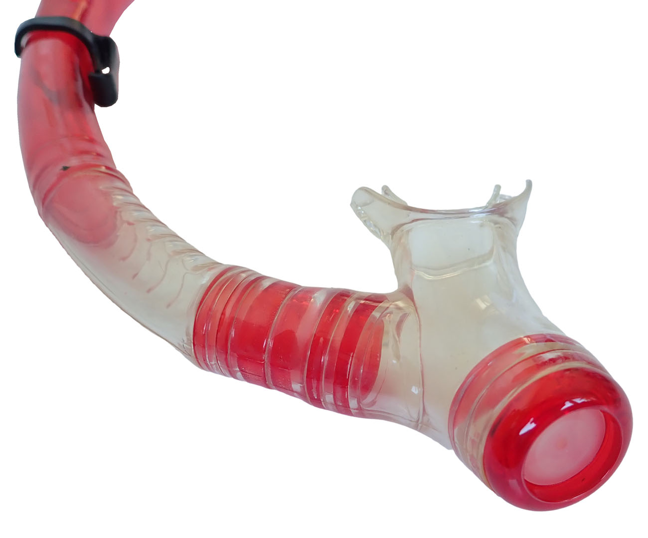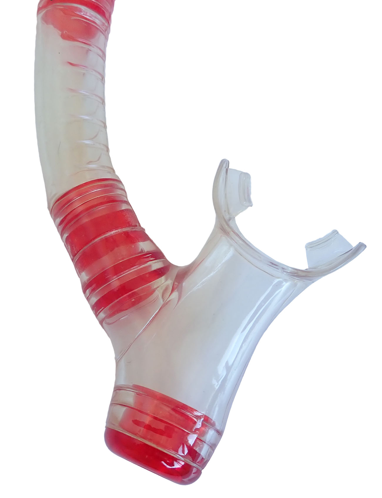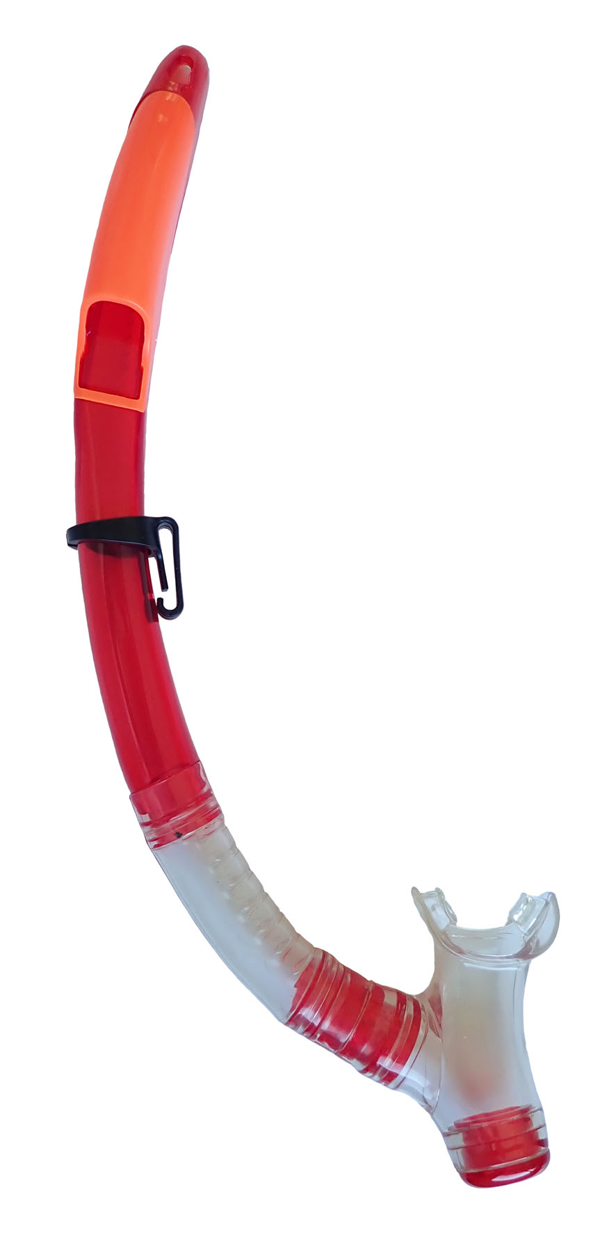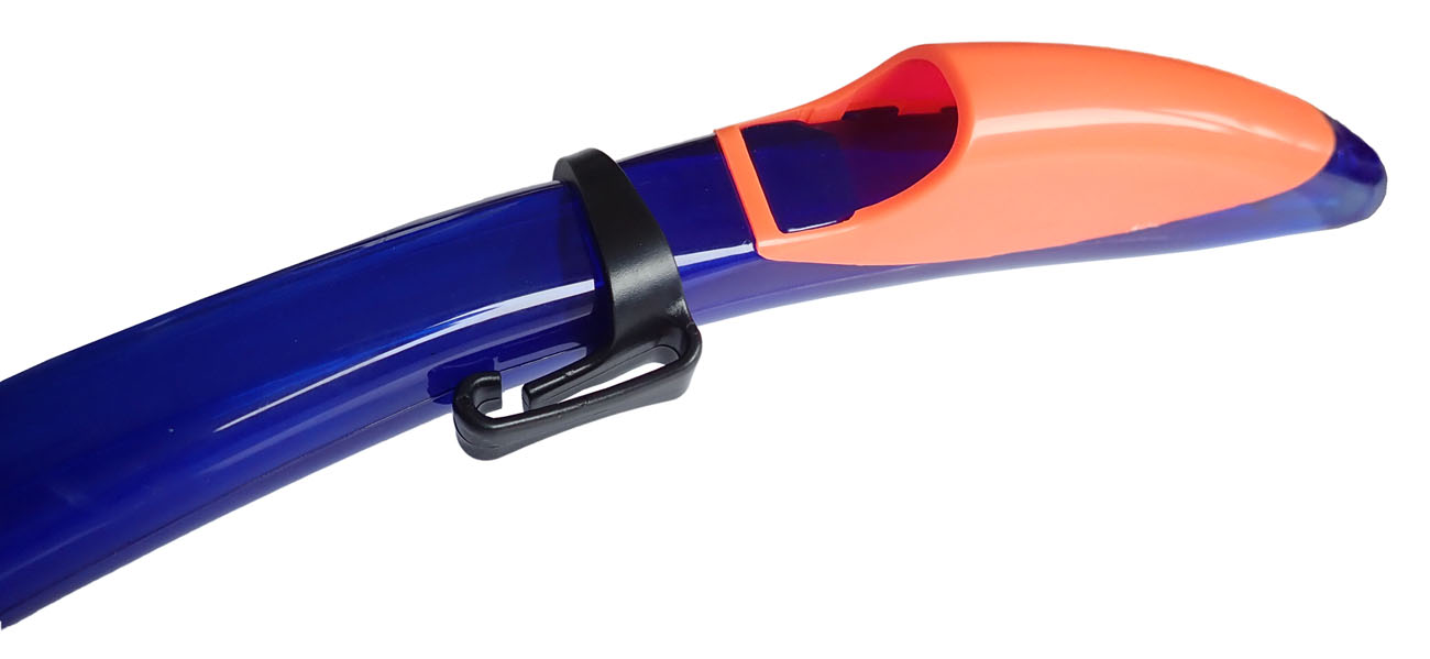 Snorkel with top water cover and bottom exhaust. Material silicone and polyethylene. Available in two types with two colour options - see photo.