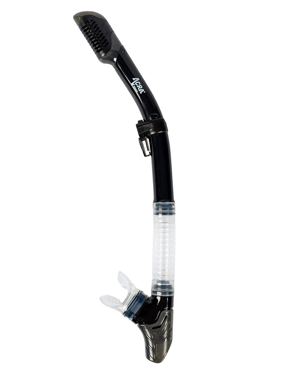 Dry Top Snorkel for undisturbed breathing: High quality snorkel with Dry Top valve that seals the breathing tube when submerged. The Dry Top snorkel prevents water from entering the breathing tube, the ergonomic silicone mouthpiece is comfortable and durable. The bottom flush valve allows water to be quickly drained so you can enjoy easy and undisturbed breathing while diving underwater.