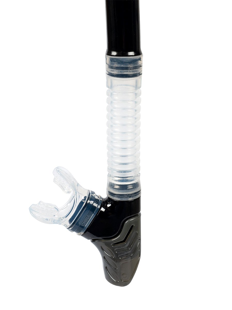 Dry Top Snorkel for undisturbed breathing: High quality snorkel with Dry Top valve that seals the breathing tube when submerged. The Dry Top snorkel prevents water from entering the breathing tube, the ergonomic silicone mouthpiece is comfortable and durable. The bottom flush valve allows water to be quickly drained so you can enjoy easy and undisturbed breathing while diving underwater.