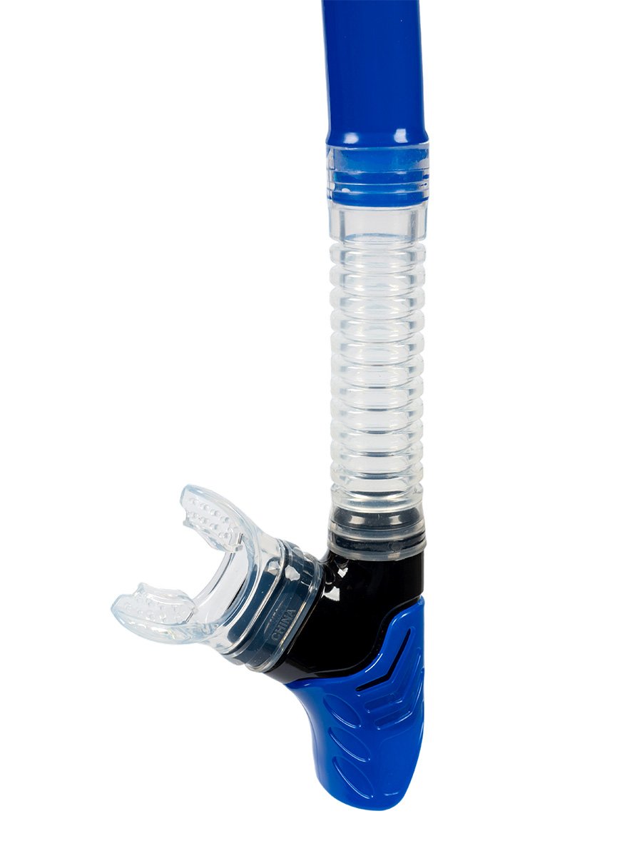 Dry Top Snorkel for undisturbed breathing: High quality snorkel with Dry Top valve that seals the breathing tube when submerged. The Dry Top snorkel prevents water from entering the breathing tube, the ergonomic silicone mouthpiece is comfortable and durable. The bottom flush valve allows water to be quickly drained so you can enjoy easy and undisturbed breathing while diving underwater.