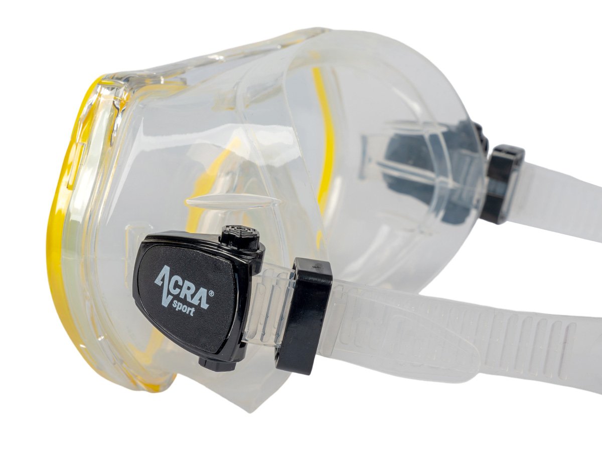 Snorkel Snorkel Mask with Panoramic View: 180° HD Panoramic View. Constructed of four panoramic view windows with a tempered glass visor and hypoallergenic silicone liner, the Acra Sport snorkel mask withstands underwater pressure while diving and snorkeling and offers maximum comfort. The snorkel mask's hem is made of soft and flexible silicone, and the food-grade silicone mouthpiece is secure, creating a watertight seal with each driver's face and attaching perfectly to the mouth with no particular odor.
