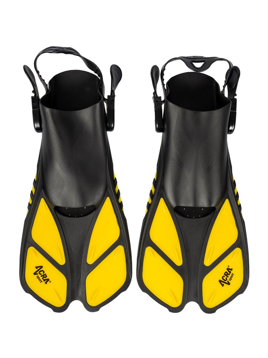 Flexible Adjustable Diving Fins: Longer, lightweight and responsive blade provide a smooth, easy yet powerful bounce. The fins with open heel and adjustable strap, leg pocket and strap are made of durable rubber to ensure a comfortable fit. The Acra Sport fin provides excellent traction with moderate kicking power, perfect for your snorkeling or diving activities.