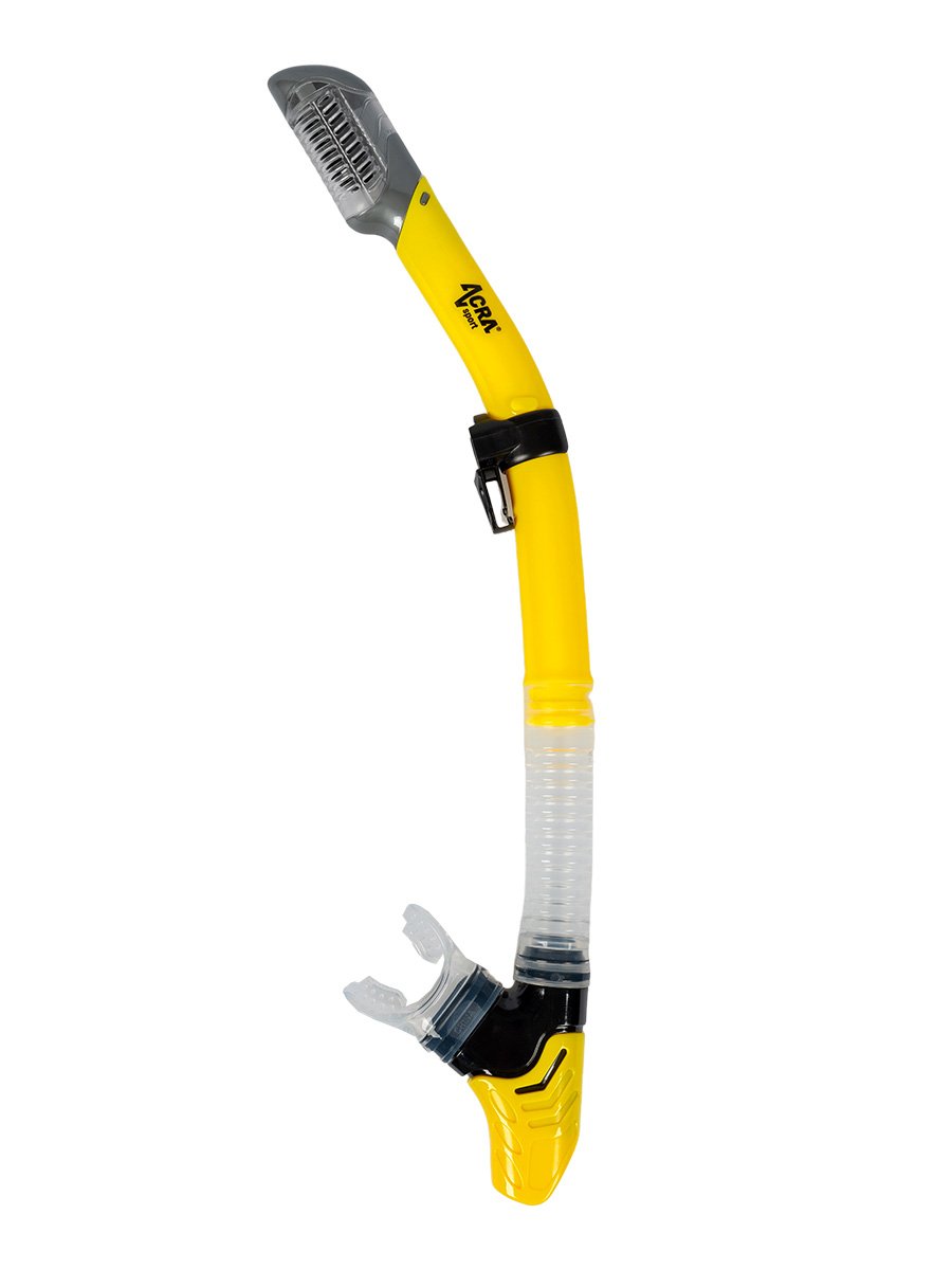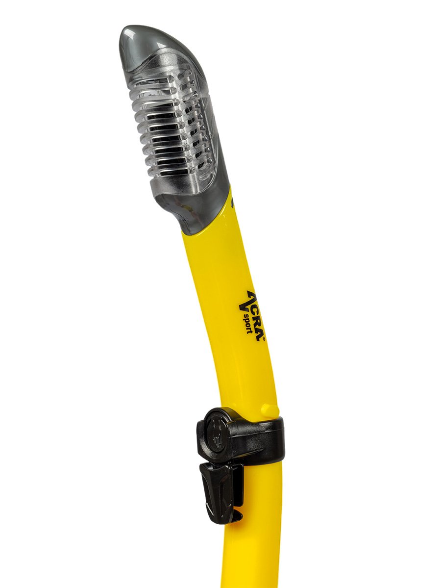 Dry Top Snorkel for undisturbed breathing: High quality snorkel with Dry Top valve that seals the breathing tube when submerged. The Dry Top snorkel prevents water from entering the breathing tube, the ergonomic silicone mouthpiece is comfortable and durable. The bottom flush valve allows water to be quickly drained so you can enjoy easy and undisturbed breathing while diving underwater.