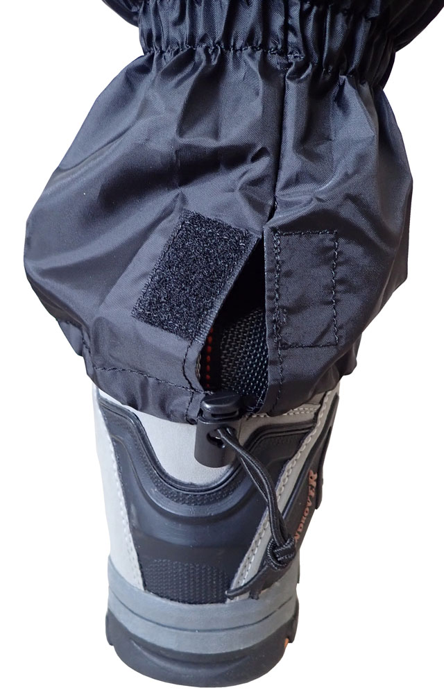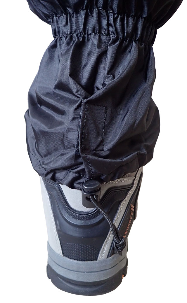 Textile hiking shoe covers. The material used is nylon, in black colour. The boot covers have two fixed elastic bands and one lace-up band, which can be fastened to the calf of…