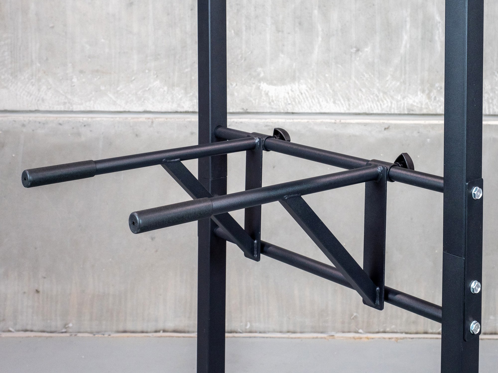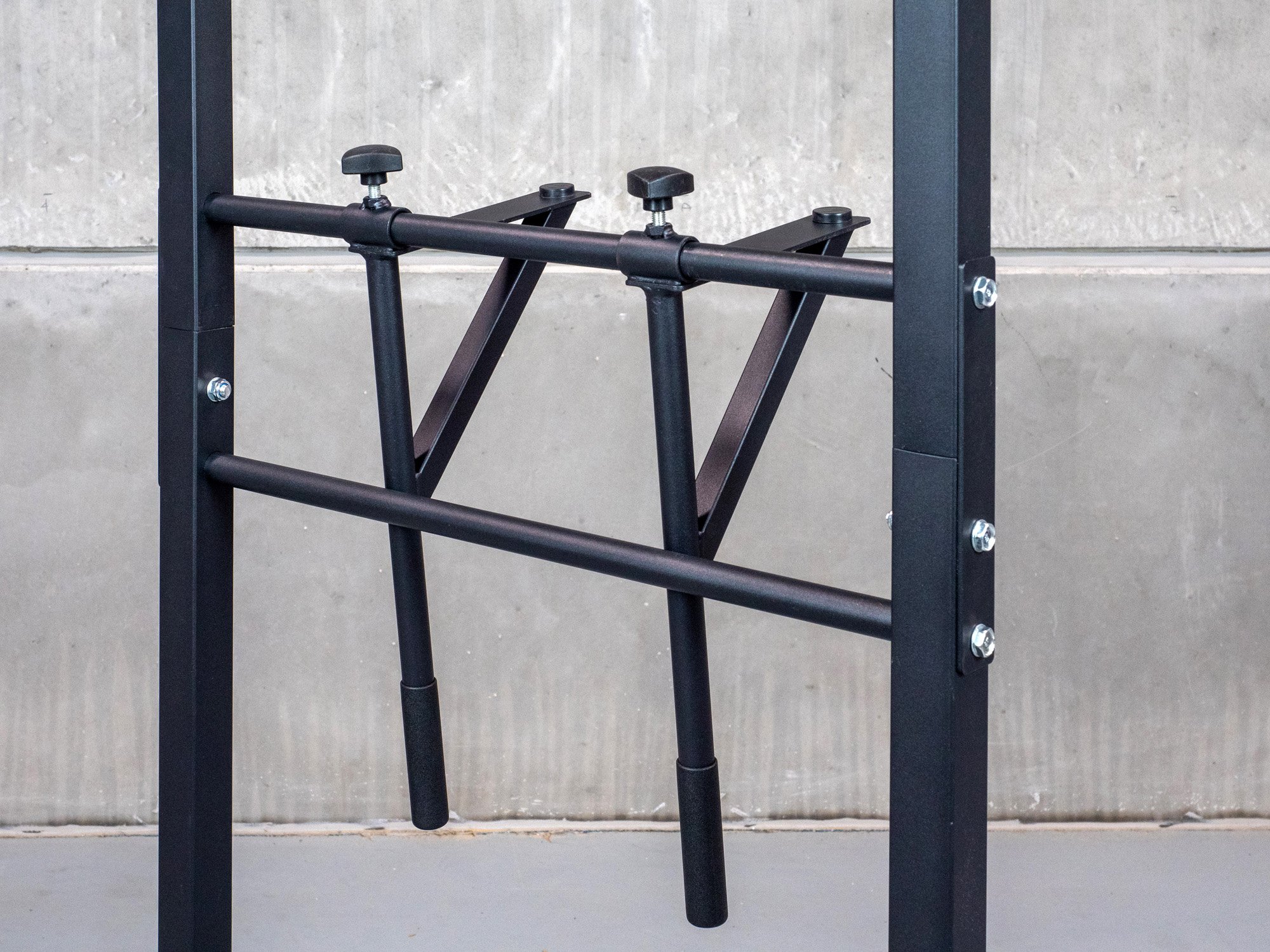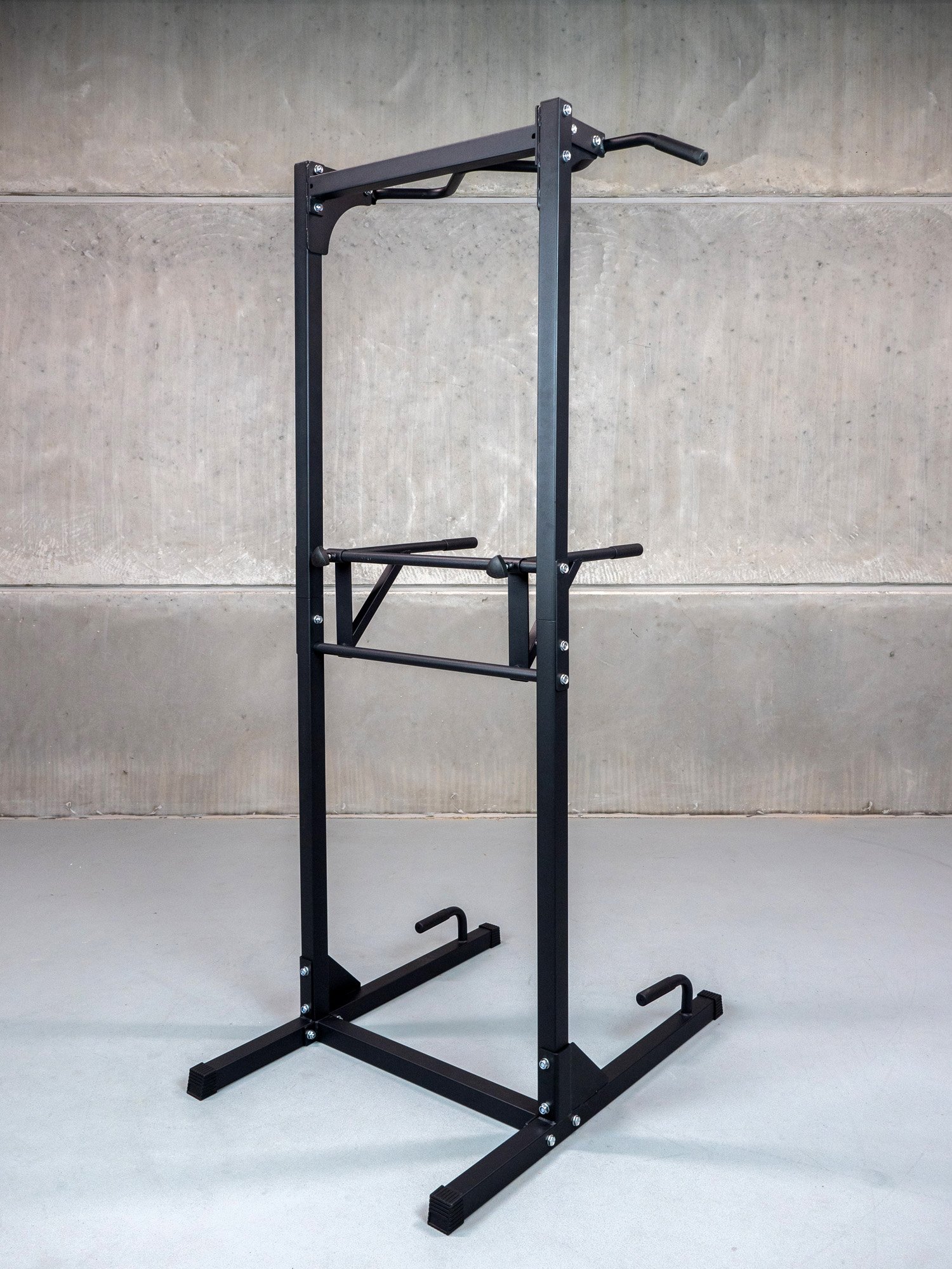 This is a freestanding rack structure with bars and trapeze that works with its own weight. In addition to a bar for push-ups and a base for pulling or lifting legs, it has a sturdy frame that has a durable black finish. The sturdy construction ensures safety and comfort during exercise.